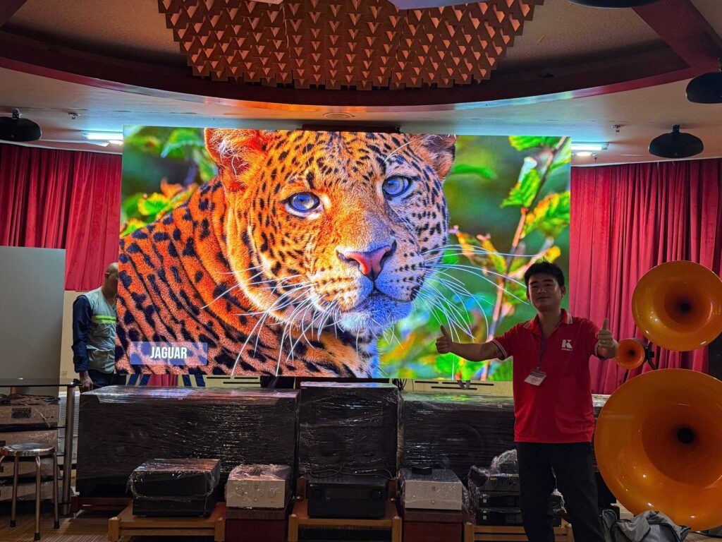 Sau khi lắp đặt xong, đội ngũ kỹ thuật tiến hành kiểm tra toàn diện: độ sáng, màu sắc, độ đồng nhất, tốc độ hiển thị… Màn hình LED P0.9 vận hành ổn định, cho hình ảnh siêu thực, mượt mà, đáp ứng yêu cầu khắt khe của Tập đoàn Tân Hiệp Phát.