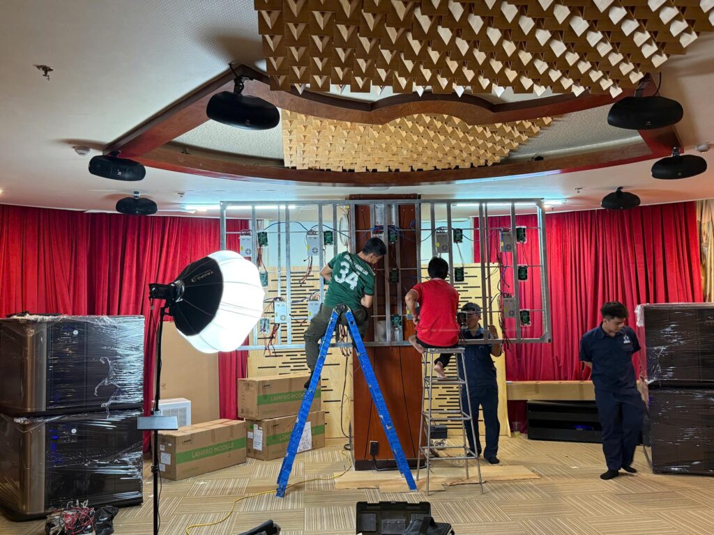 Sau khi lắp đặt xong, đội ngũ kỹ thuật tiến hành kiểm tra toàn diện: độ sáng, màu sắc, độ đồng nhất, tốc độ hiển thị… Màn hình LED P0.9 vận hành ổn định, cho hình ảnh siêu thực, mượt mà, đáp ứng yêu cầu khắt khe của Tập đoàn Tân Hiệp Phát.